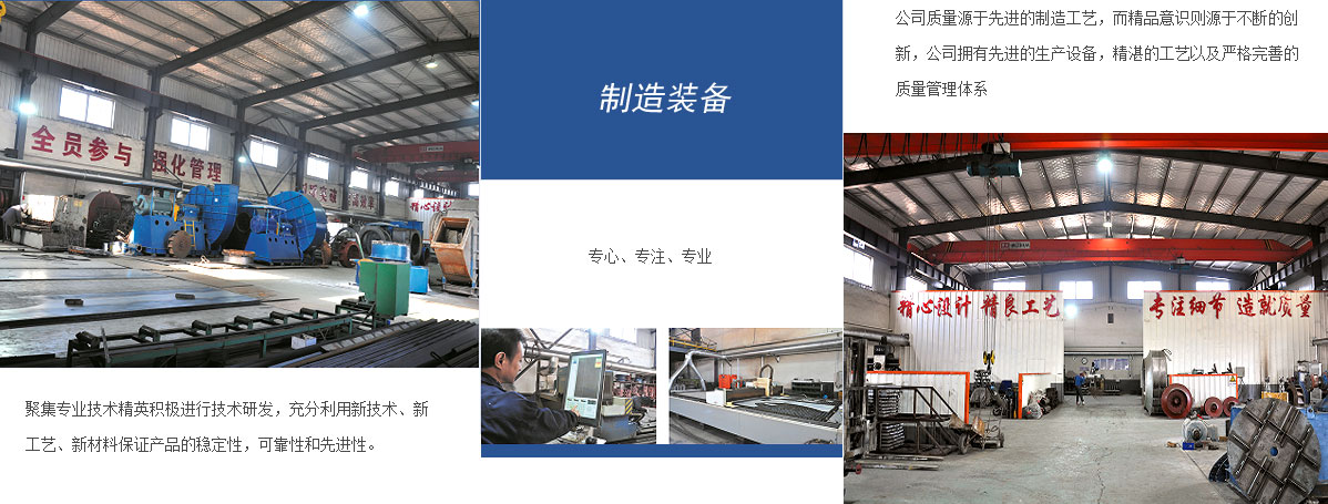 公司始建于1992年,擁有環保、機械、自動化控制等各種專業工程設計人員二十多名,擁有數控激光、等離子、火焰切割機、數控剪、折彎機、卷板機,自動埋弧焊機、CO2氣體保護焊機等高精設備。主要產品有高中低壓離心通心機、高壓小流量離心通風機、高溫風機、排塵風機、軸流風機、陶瓷窯爐風機、鋁材窯爐風機、鎂質品專用風機等二十多個系列三百多種規格及上百種非標產品。廣泛應用于機械、化工建材、爐窯冶金、輕工、鑄造、服務行業。